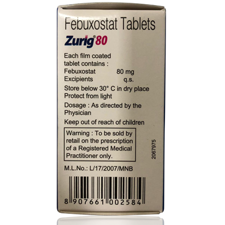 - 当您第一次开始服用这种药时,您可能会遭受更多的痛风发作。不要停止Zurig 80 Tablet遭受痛风的急性发作,因为那样会使发作更严重。